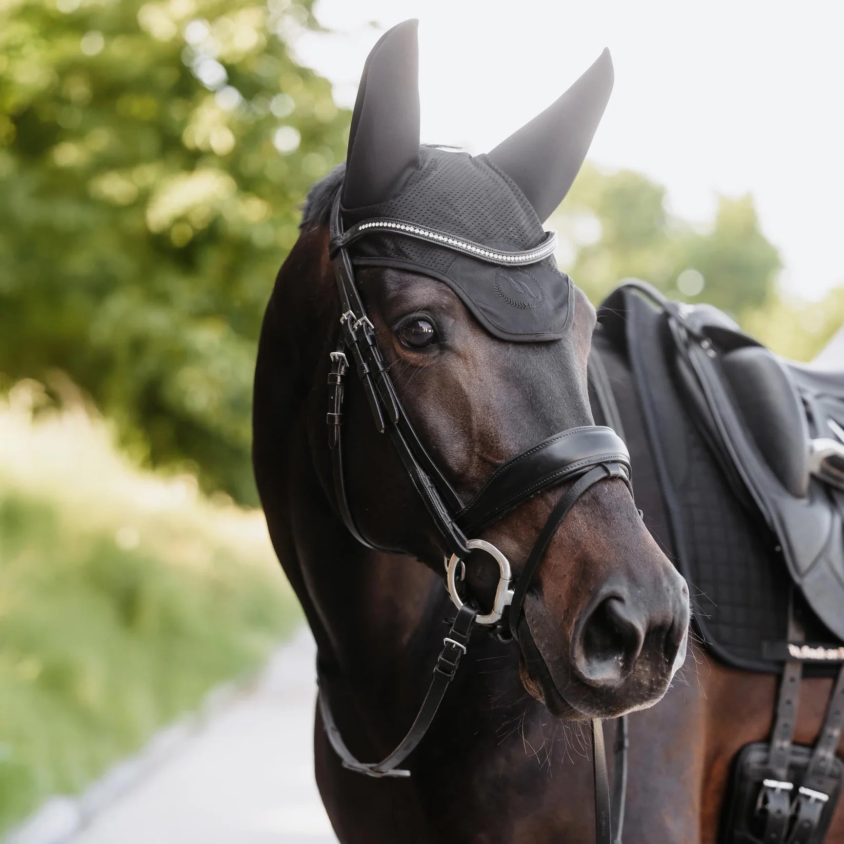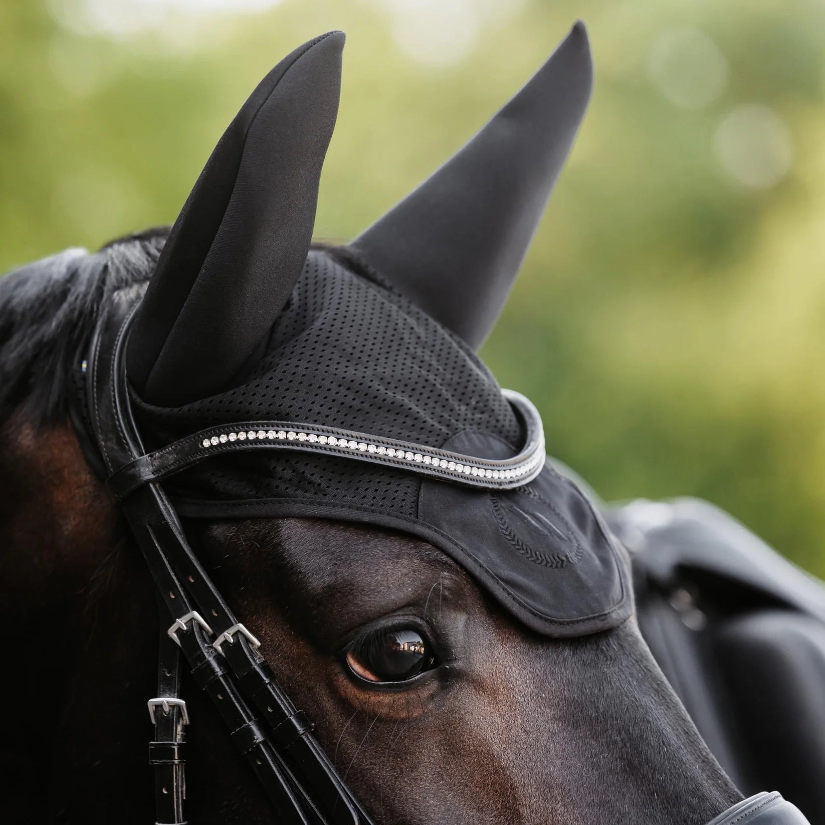 Back on Track Aureum- Lyddæmpende hut, der kan virke beroligende på en spændt hest ved at blokere distraherende lyde og beskytte ørerne mod vind og insekter.