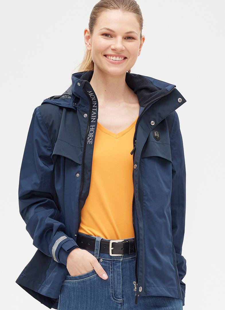 Mountain Horse Graceful jakke er en let forårs- og sommerversion af den populære Grace ridejakke. Jakken kombinerer en feminin og velsiddende pasform med funktionelle detaljer i et vand- og vindtæt samt åndbart materiale.