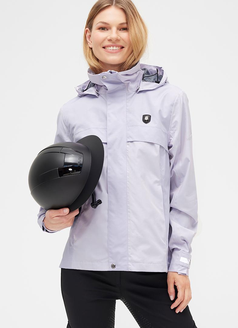 Jakken er udstyret med en slidstærk 2-vejs YKK® lynlås, beskyttende vindstolper samt en aftagelig og justerbar hætte. Den figursyede ryg med elastik i taljen giver en flot og komfortabel pasform. Rideslidser bagpå med trykknaplukning sikrer god bevægelsesfrihed i sadlen.