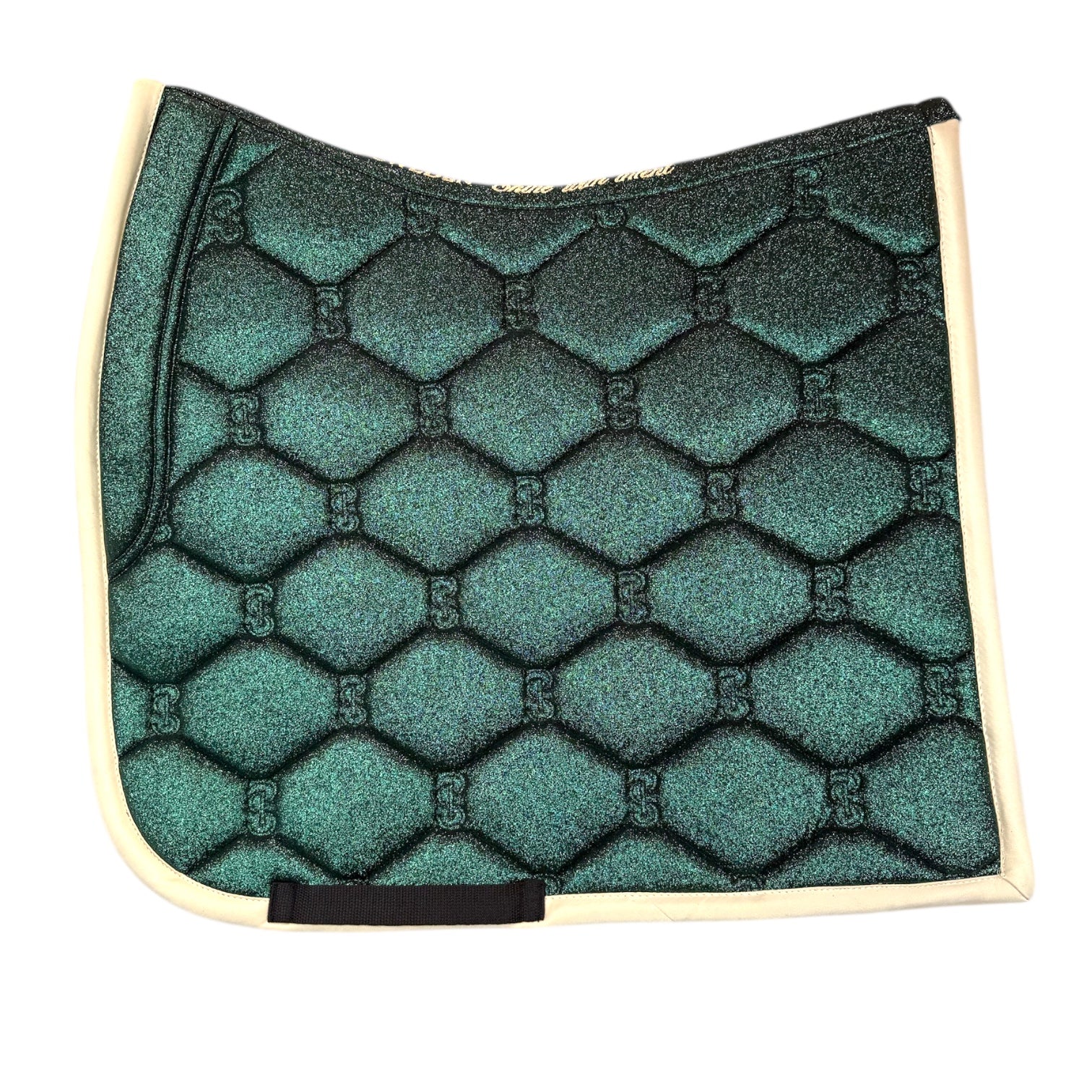 PS of Sweden Sparkle dressurunderlag med pude foran. Blikfang på ridebanen med glitter all over!