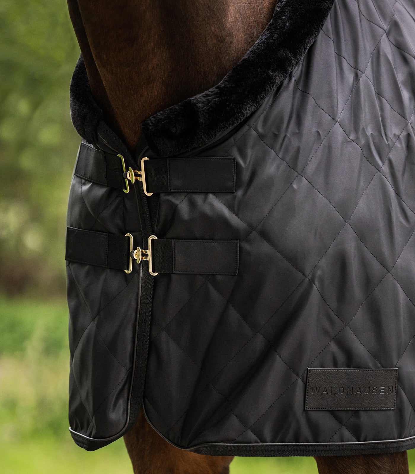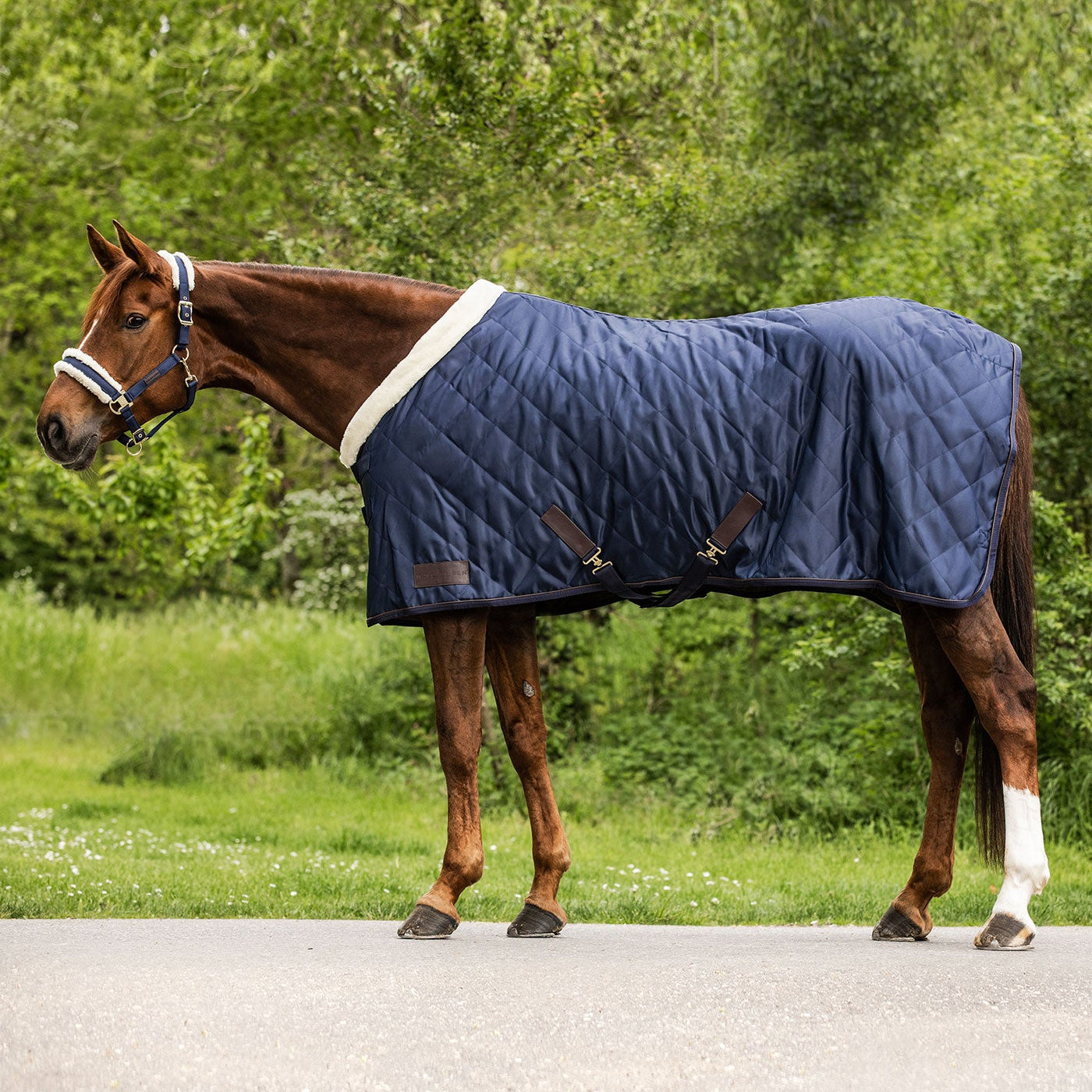 Transportdækken af høj kvalitet, foret med kunstigt kaninpels til kolde dage. Det bløde for holder effektivt på hestens kropsvarme, er ekstra behageligt og modvirker gnidning. Dækkenet er afsluttet med en elegant kant af kunstpels ved halsen.