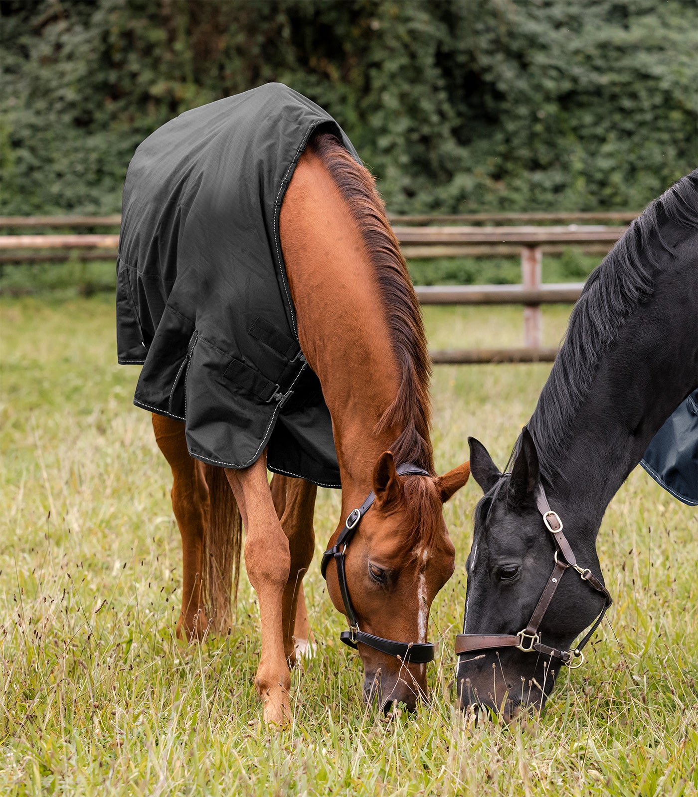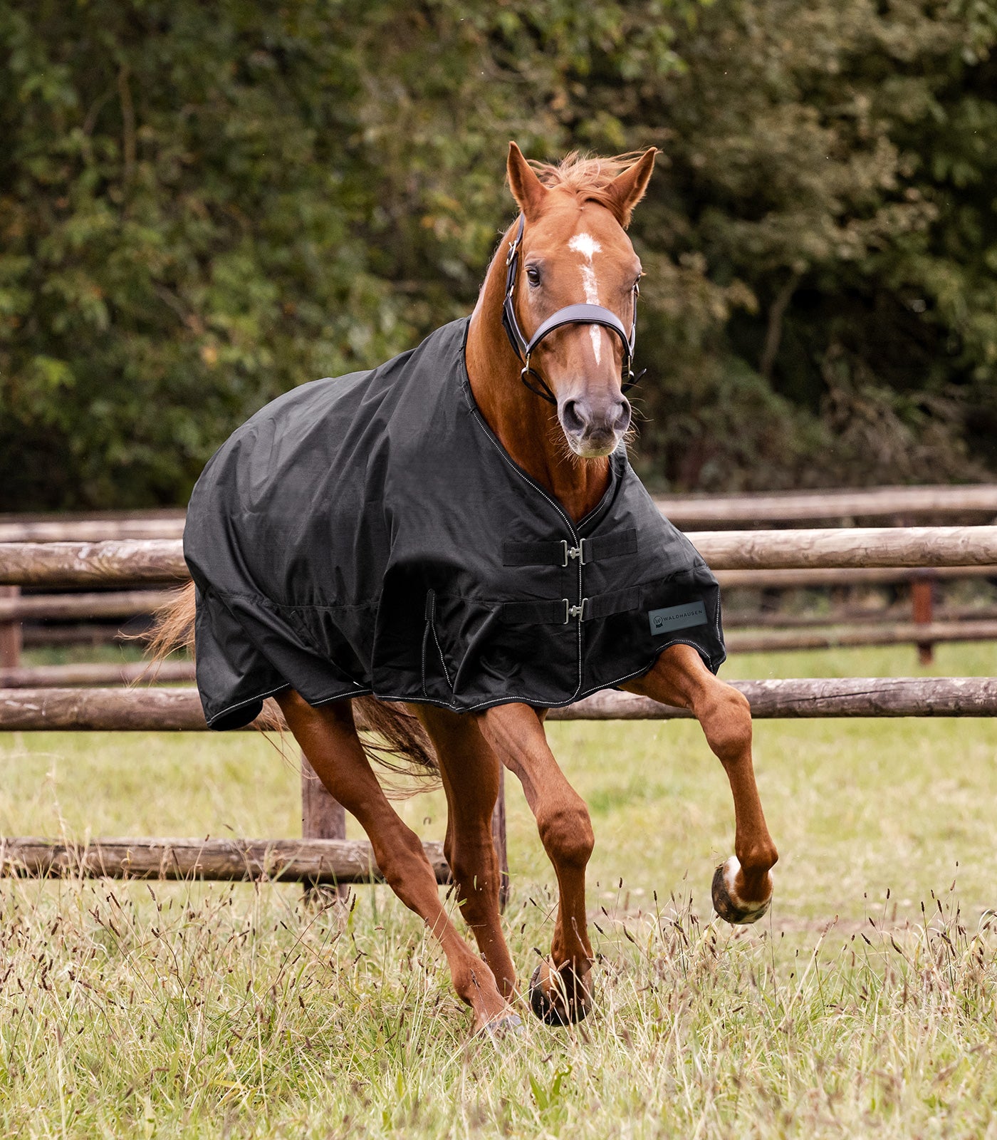 Waldhausen Nordic Turnout overgangsdækken, 100 g, giver din hest optimal komfort udendørs på kølige dage. Dækkenet er fremstillet i slidstærkt 600 denier ripstop-materiale, der både er åndbart og vandtæt med en vandsøjle på 3000 mm, så din hest holdes varm og tør.