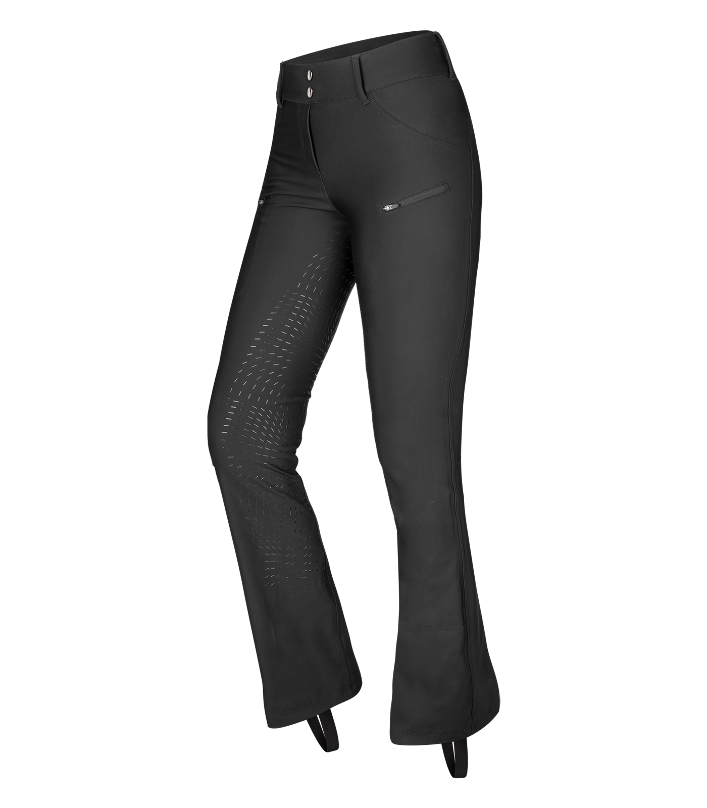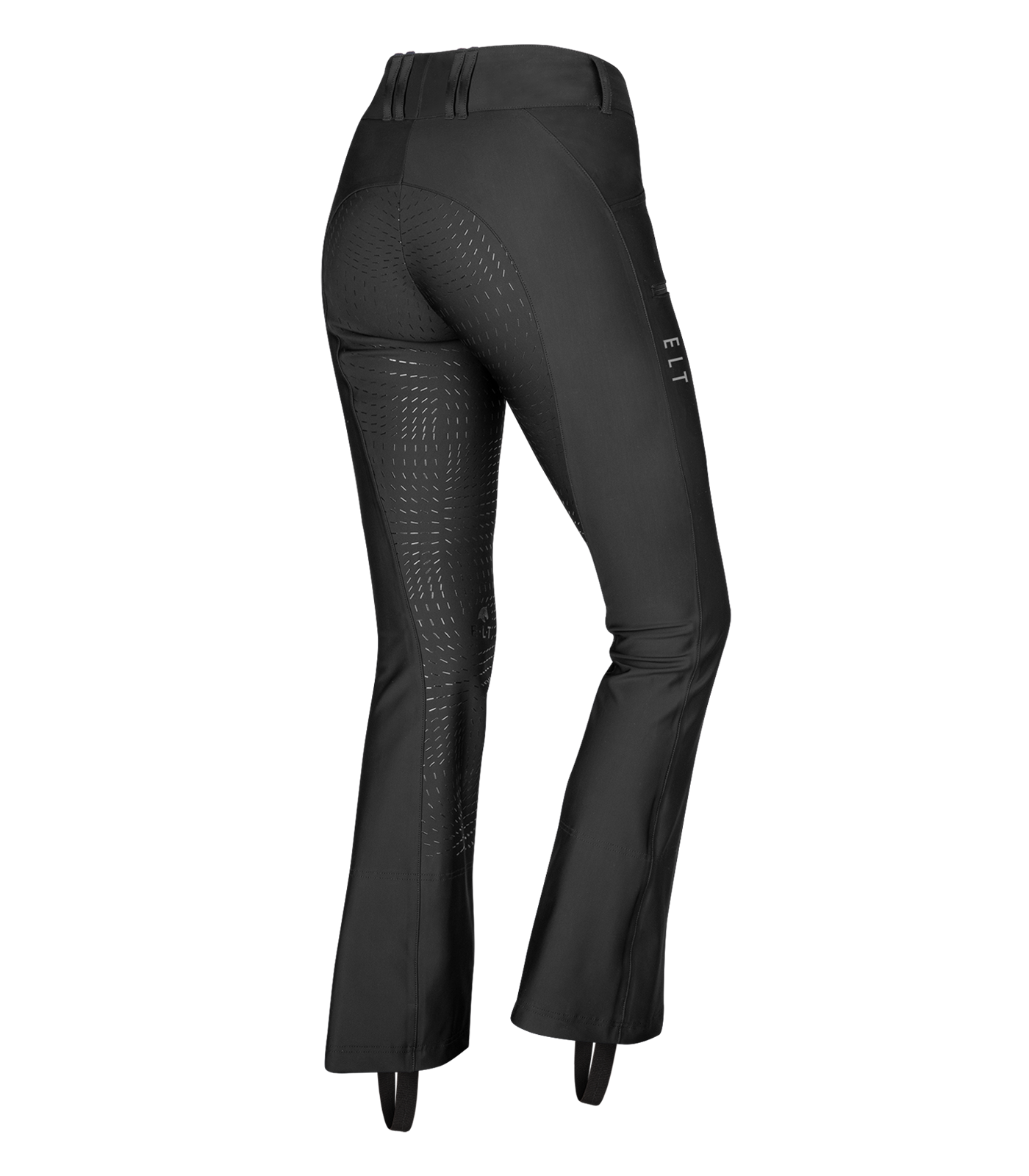 Bukserne er vandtætte med en vandsøjle på 5.000 mm og har forseglede sidesømme, der beskytter mod regn og fugt. To praktiske mobillommer med vandtætte lynlåse holder dine ejendele sikre, og reflekterende E·L·T-detaljer langs højre sidesøm øger synligheden. Designet fuldendes med diskrete logo-detaljer og E·L·T Equestrian Performance-skrift i linningen.