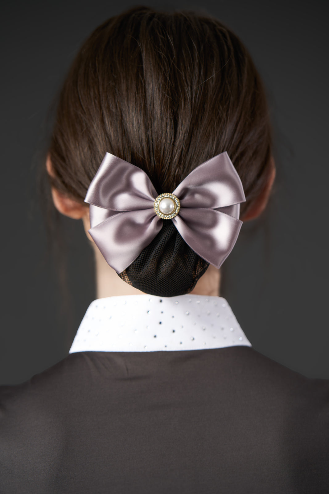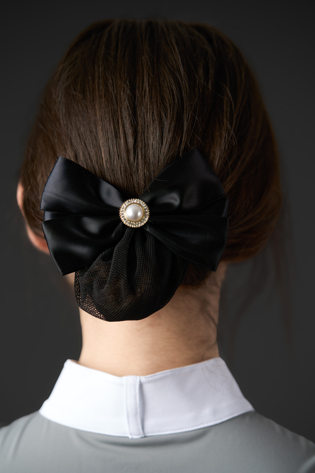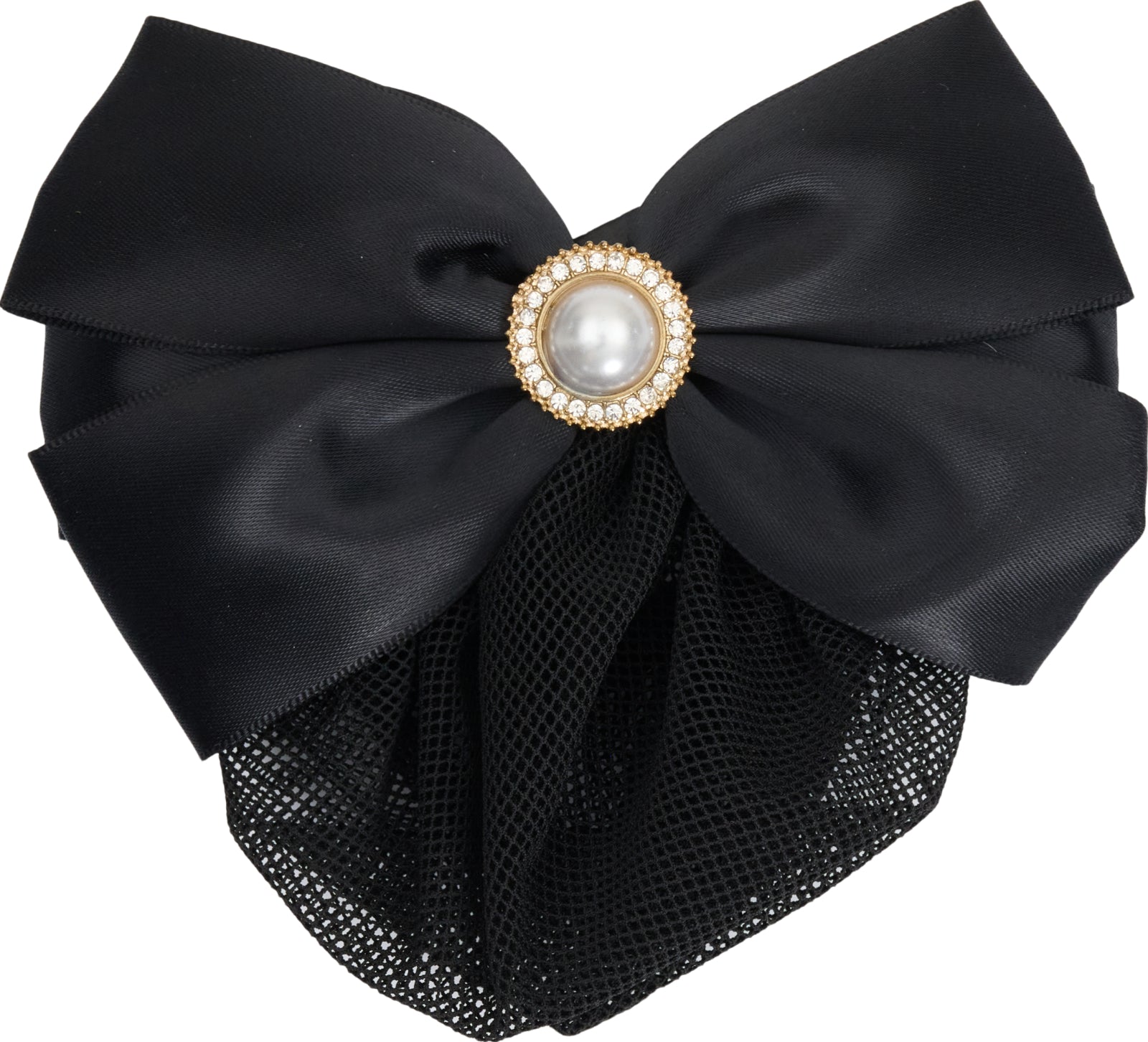 Hårnet med sløjfe og en stor dekorativ perle omgivet af pailletter, der giver et eksklusivt og feminint udtryk. Hårnettet holder håret sikkert på plads på en dekorativ og elegant måde og er ideelt til stævner og andre festlige anledninger.
