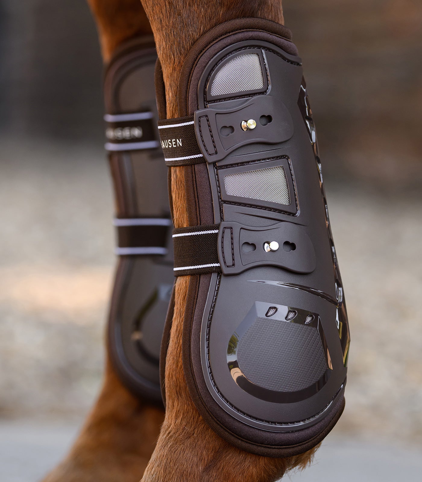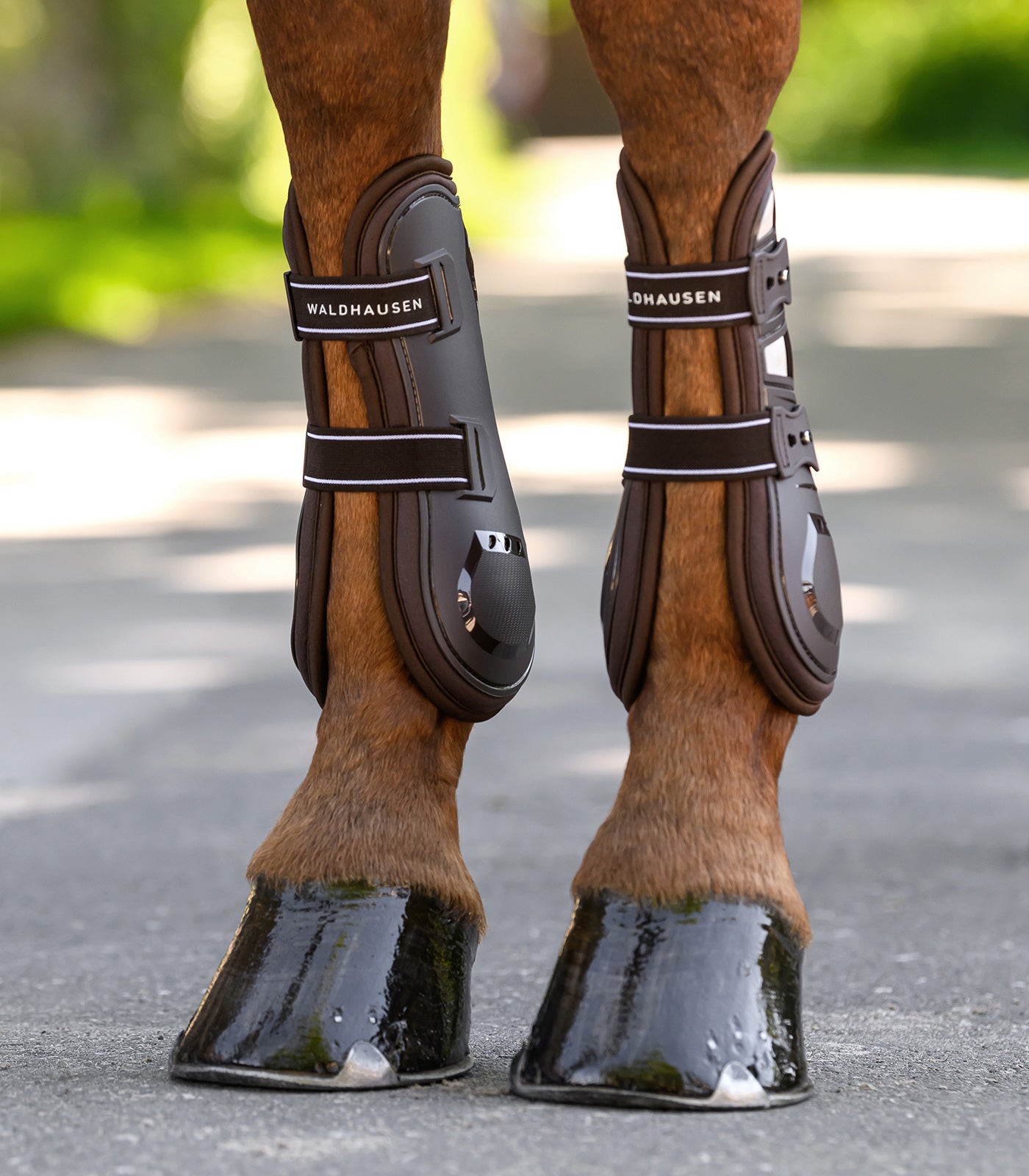 Disse gamacher kombinerer maksimal beskyttelse, komfort og innovativ teknologi. Den anatomisk formede, lette og slagfaste skal giver målrettet støtte til koder og sener, mens memory foam-polstringen effektivt absorberer stød og energi ved påvirkning. Materialet tilpasser sig perfekt til hestens ben ved hjælp af varme og tryk, og vender efter brug tilbage til sin oprindelige form.