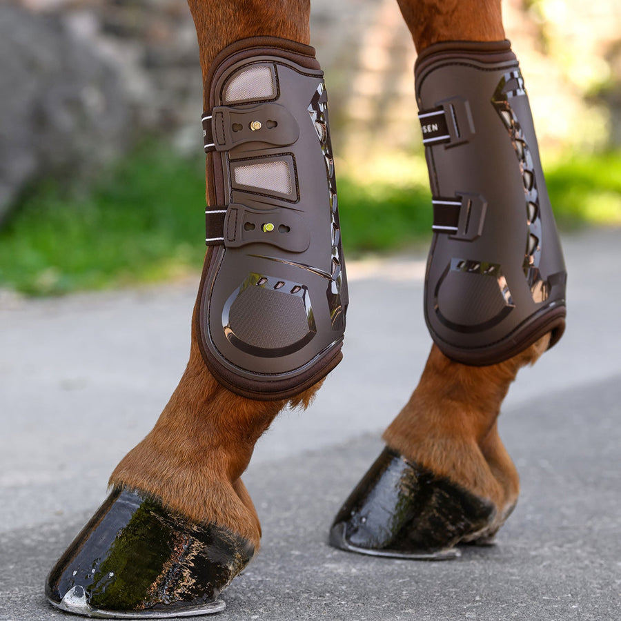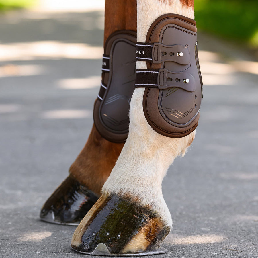 Dette forhindrer mudderet i at komme ind til hestens ben, og hesten kan derfor lukkes på fold uanset vejrforholdene.