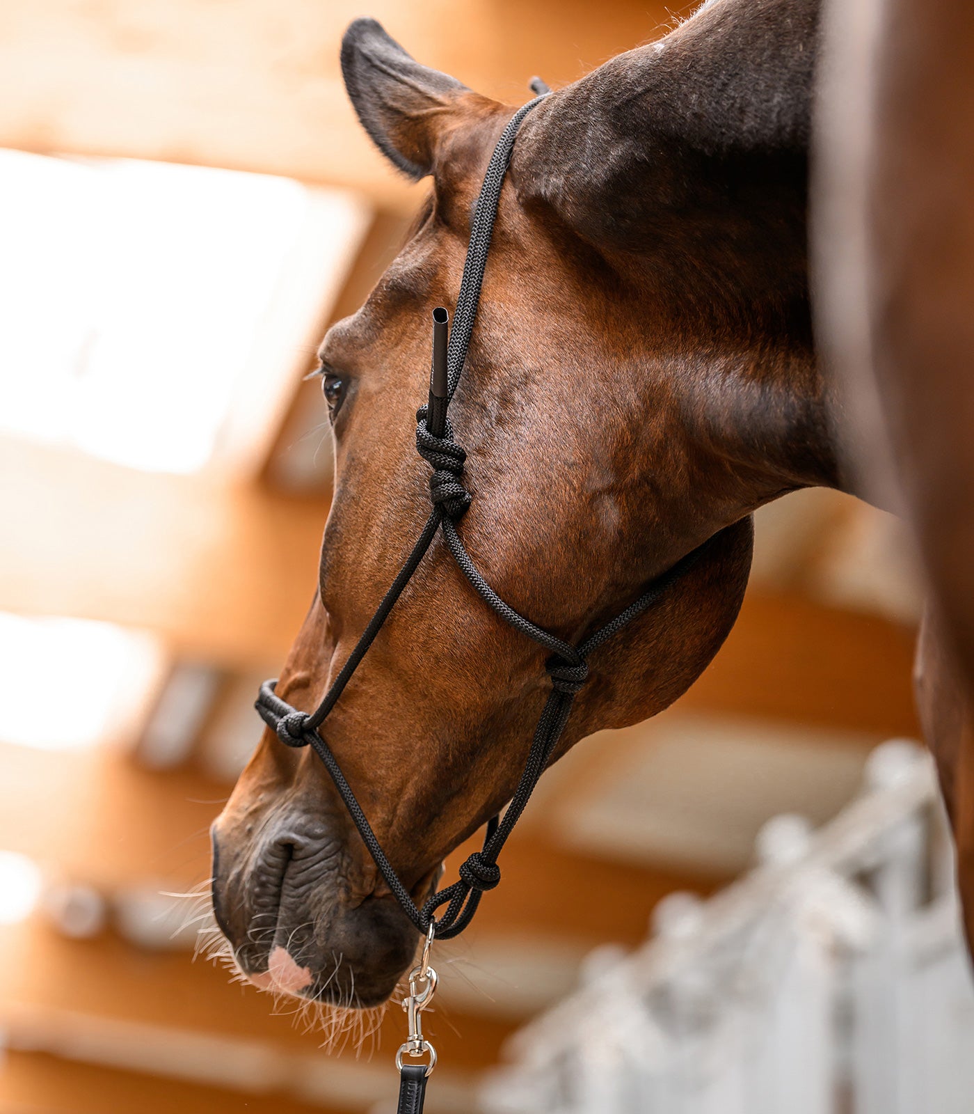 Den bevægelige ring gør, at grimen sidder mere stabilt på hestens hoved og mindsker risikoen for, at den glider.