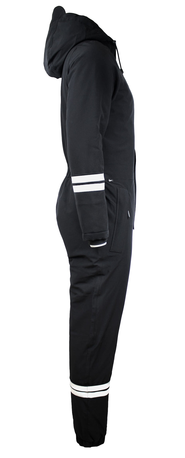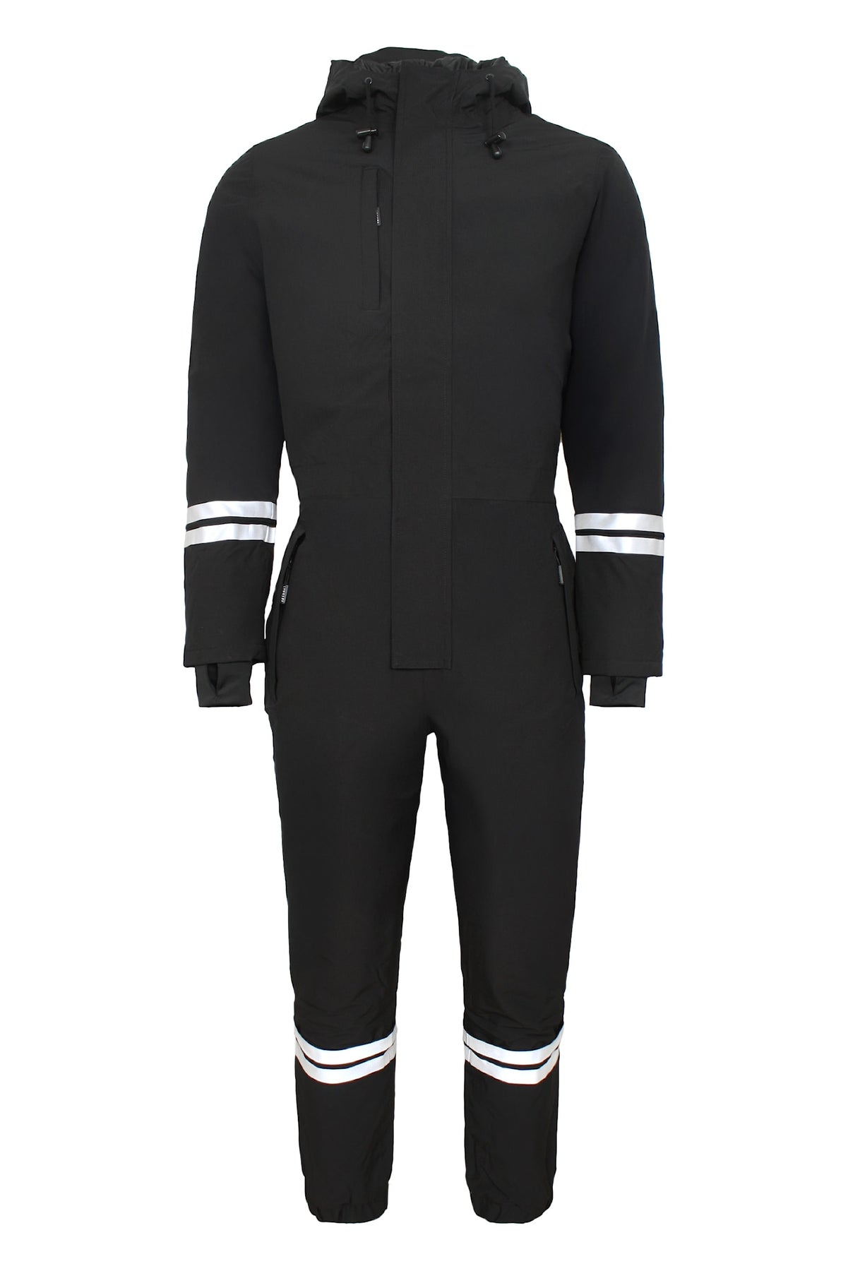Denne heldragt er fyldt med praktiske detaljer, der gør den til det ideelle valg til udendørsaktiviteter. Den har en fast hætte med snøre, en tovejs lynlås med stormklap og en brystlomme med lynlås på ydersiden. Derudover finder du to sidelommer med lynlås og justerbar talje. Elastiske stormmanchetter på ærmerne og elastiske ankler sikrer en tæt pasform, og de skjulte og foldbare reflekser på ærmerne og benene øger din synlighed i mørket.