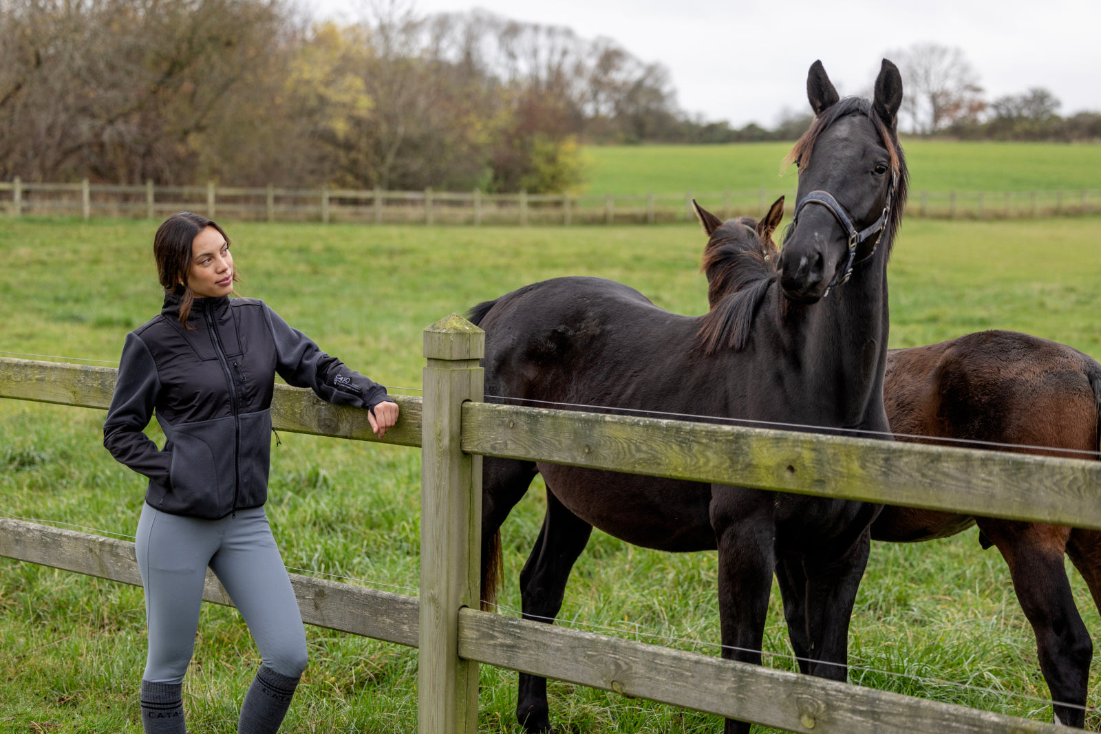 Catago Norma zip ridejakke er perfekt til hverdag og afslappet brug. Sort nylon på overkroppen og ydersiden af den nederste del af ærmer, sammen med den cremefarvet fleece skaber et interessant og flot design.