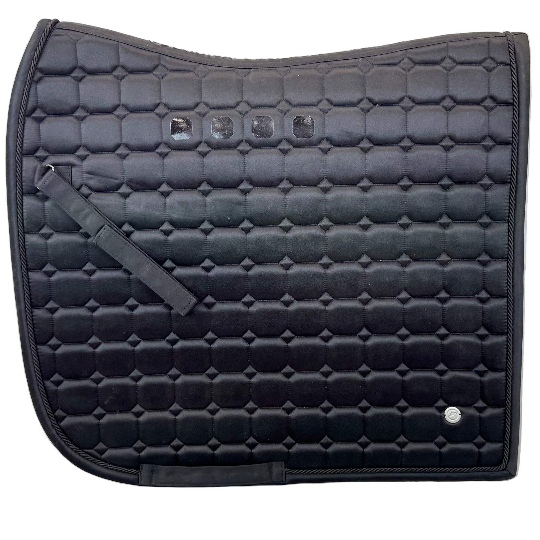 Equiva dressurunderlag med lidt antiskrid effekt. Underlaget har badge og stropper.