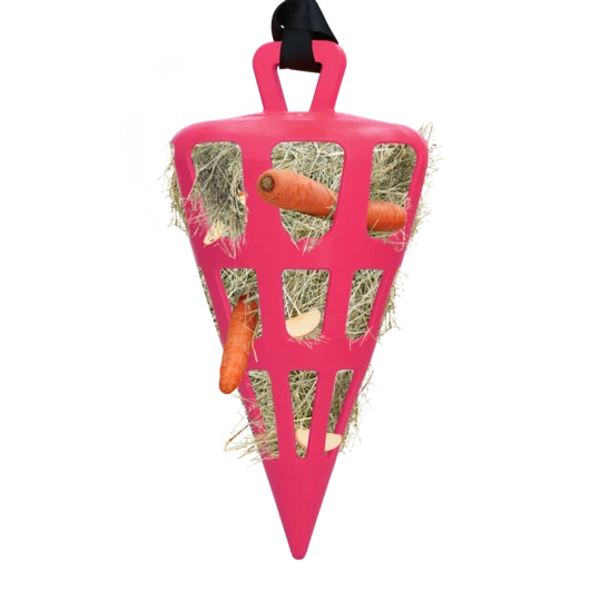 Hay Slow Feeder er velegnet til brug i traileren, stalden eller på græsmarken. Fyld den med gulerødder, urter, halm, græs eller æblestykker! Dette giver en masse legesjov til din hest!