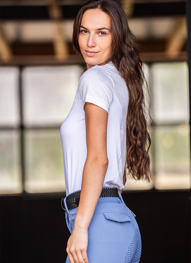 Mountain Horse Jewel Tech Top i et elegant feminin design, som er lavet i et kølende og hurtigtørrende materiale, der virker fugttransporterende.