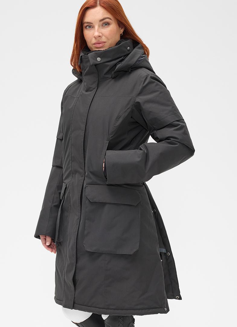 Designet er både praktisk og stilrent med reflekterende detaljer på ærme, kiler, bag ved hætten samt på frontlommerne. Tovejs YKK® lynlås foran, beskyttende vindstolper og slids bagpå med trykknapper, der er dækket både ind- og udvendigt for at undgå ridser. Frakken byder på flere funktionelle lommer, herunder let tilgængelige lommer ved taljen med blød fleece indvendigt, rummelige frontlommer, en napoleonslomme med lynlås og skjulte refleksdetaljer.