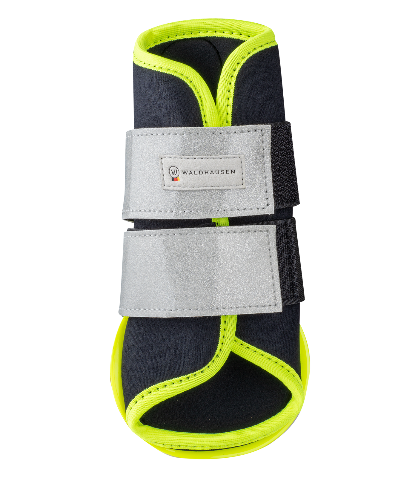 Waldhausen refleksgamacher. Den robuste, formstøbte hårde skal på indersiden giver beskyttelse mod stød eller slag. Gamacherne har reflekterende velcro lukninger for god synlighed i mørket.