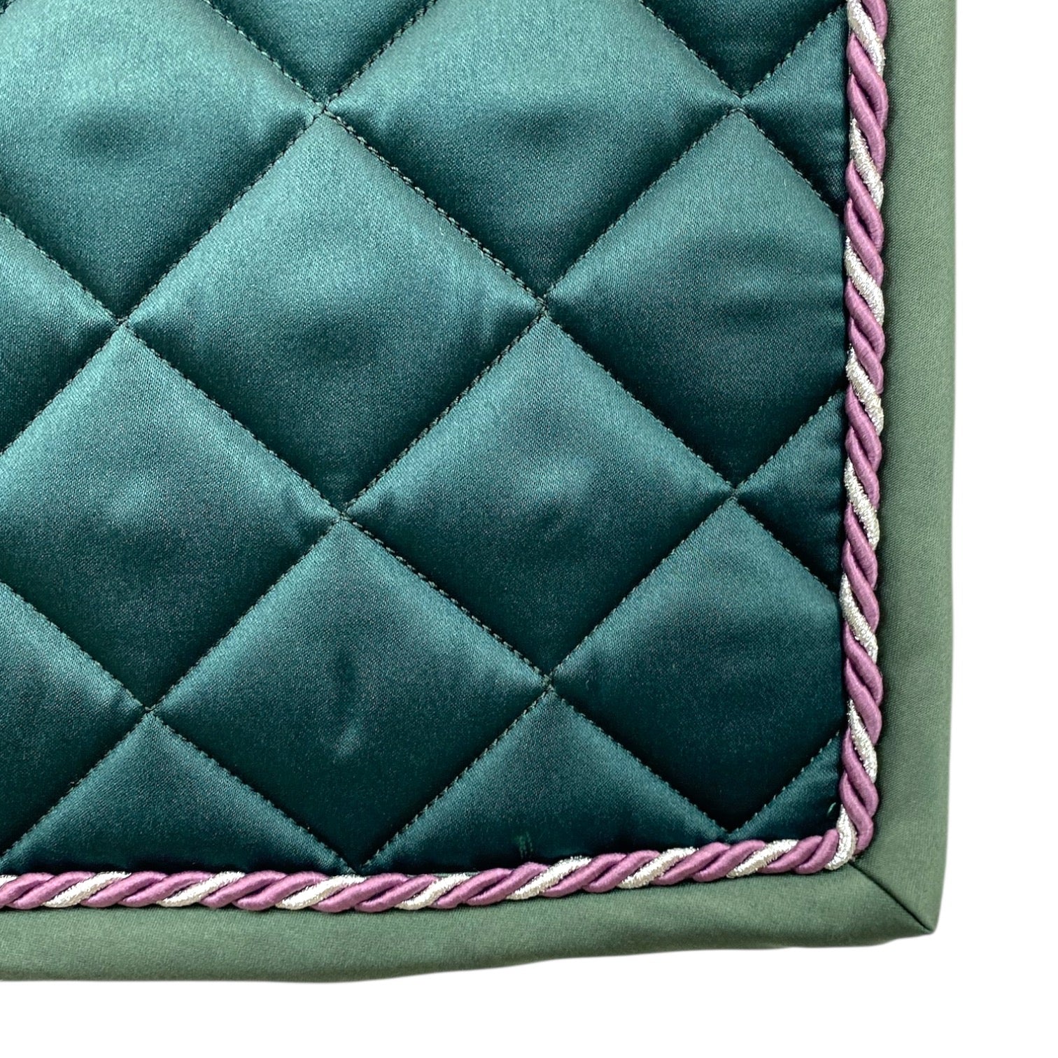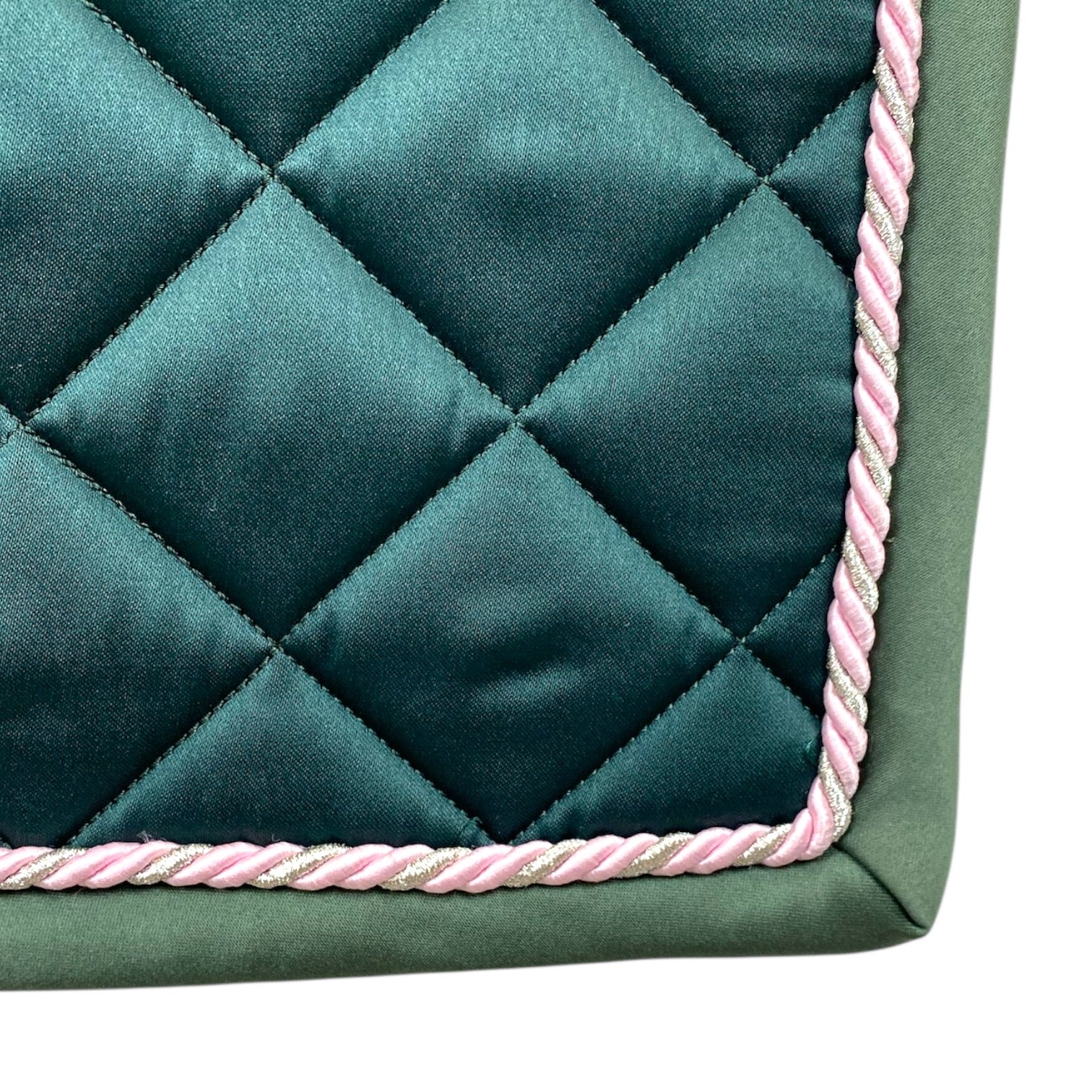 Shiny Diamond dressurunderlag. Flot shiny overflade med diamantformet quiltning. Med D-ringsstropper og flot pipe.