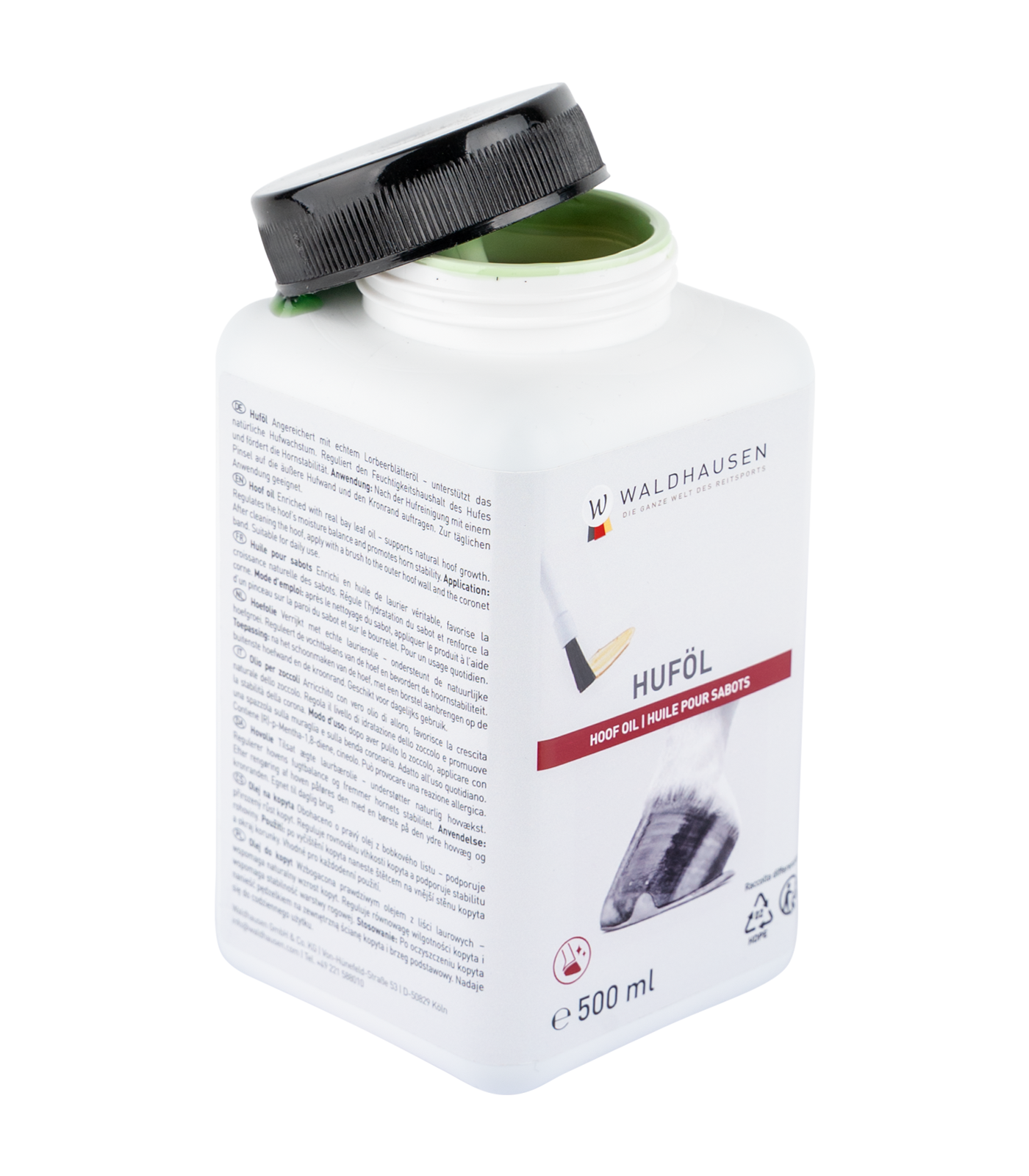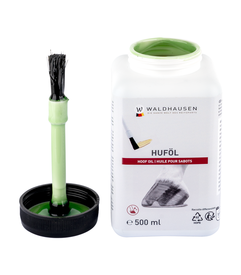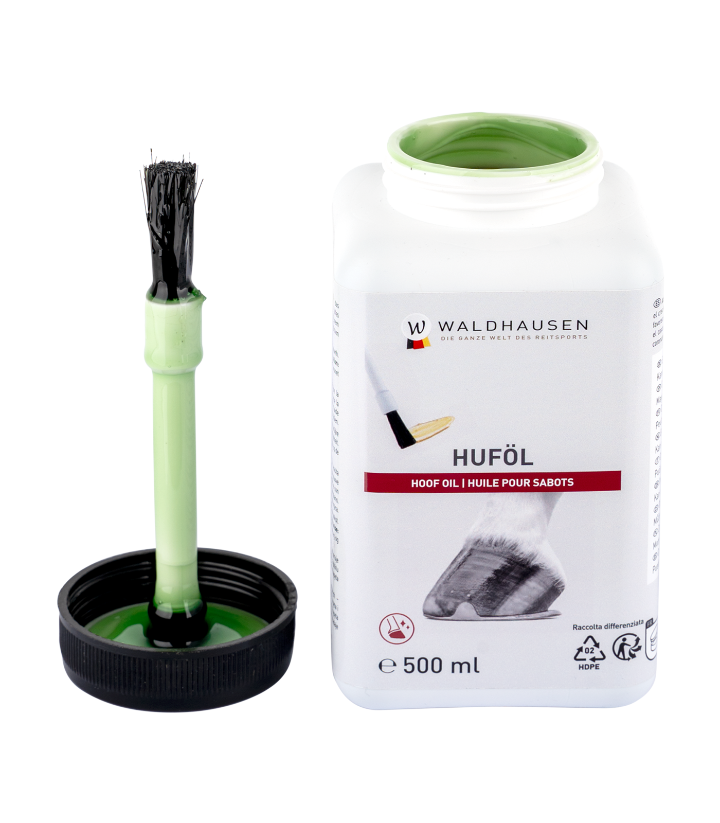 Waldhausen hovolie som plejer hoven og er hjælper til at støtte hovvækst og elasticitet. Kvalitetsolier forhindrer, at hoven tørrer ud eller bliver blød. I en praktisk flaske med pensel.