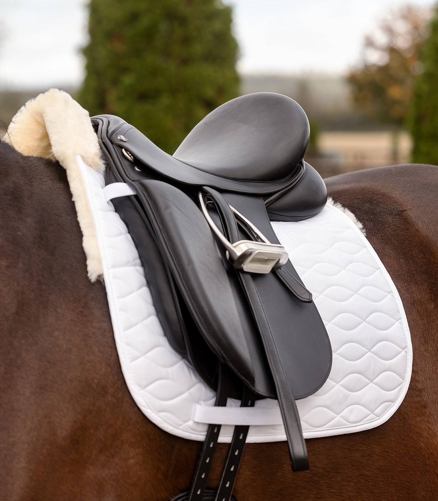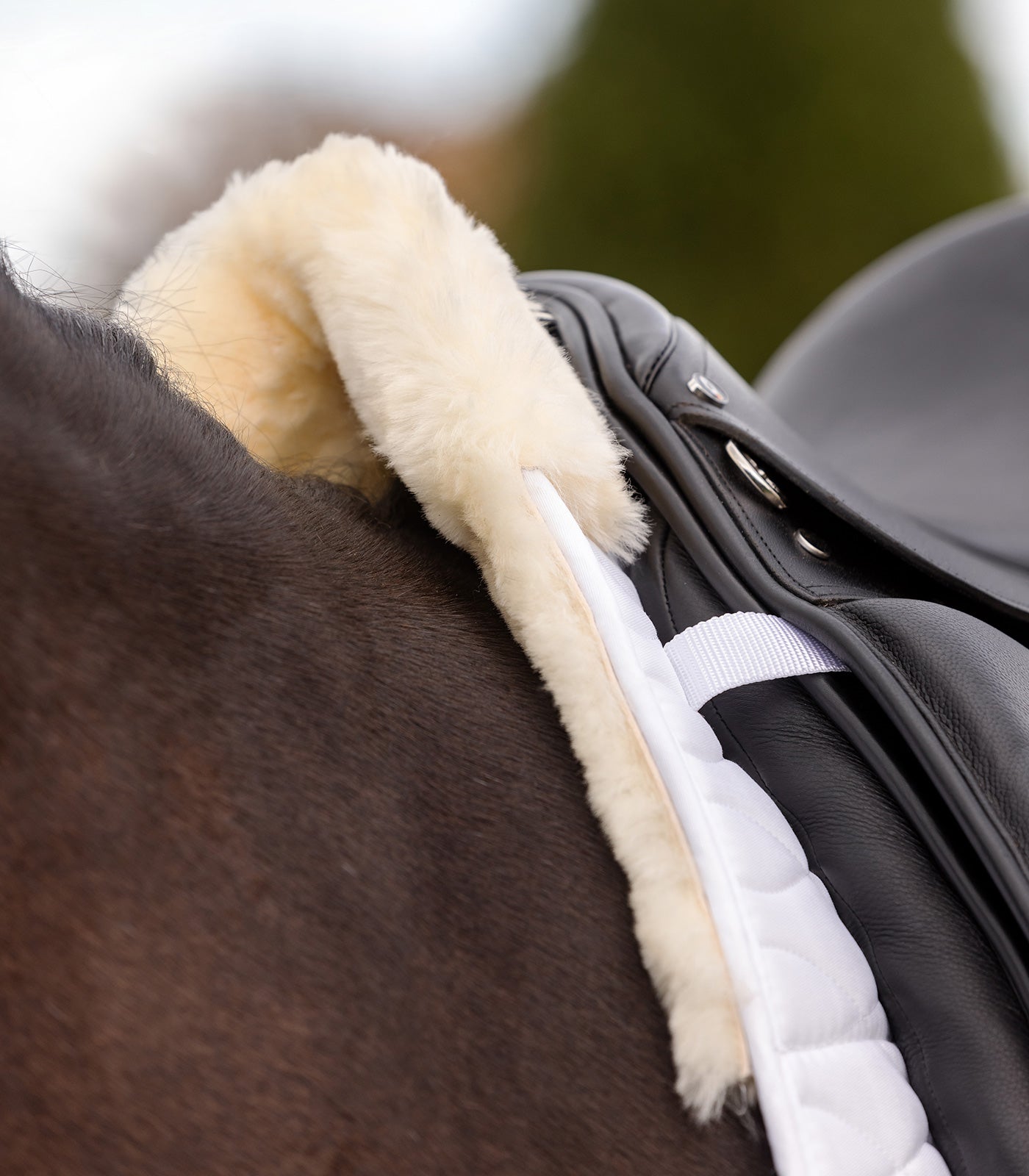 Lammeskindets naturlige egenskaber sikrer god luftcirkulation og effektiv svedtransport, hvilket giver et behageligt og tørt miljø mod hestens hud.